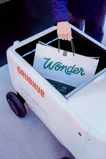 Once assigned, the order flows through Grubhub’s fulfillment orchestration system and is dispatched via Avride’s platform. Wonder staff prepare and load the order into the robot using Avride’s tablet system before departure. As the robot navigates the delivery route, Avride streams real-time location and status data into Grubhub, powering live map tracking and delivery updates in the app. When the robot arrives, the diner unlocks it through the app, retrieves their food, and closes the compartment, allowing the robot to return to the restaurant for its next delivery.