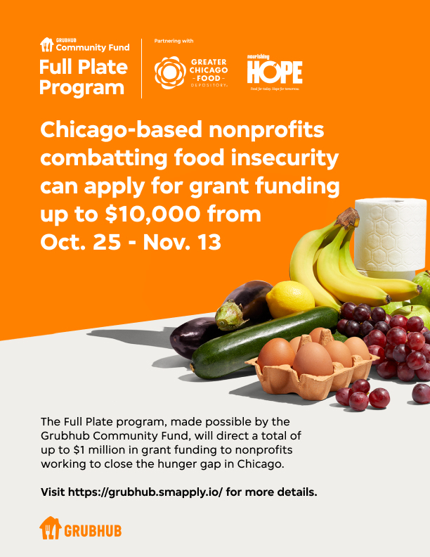 Grubhub is committed to supporting local, community-centered programs that provide access to nutritious foods and beverages to individuals and families in need, and we are grateful to Greater Chicago Food Depository and Nourishing Hope for helping make this possible. For additional application details, please visit https://grubhub.smapply.io/.
